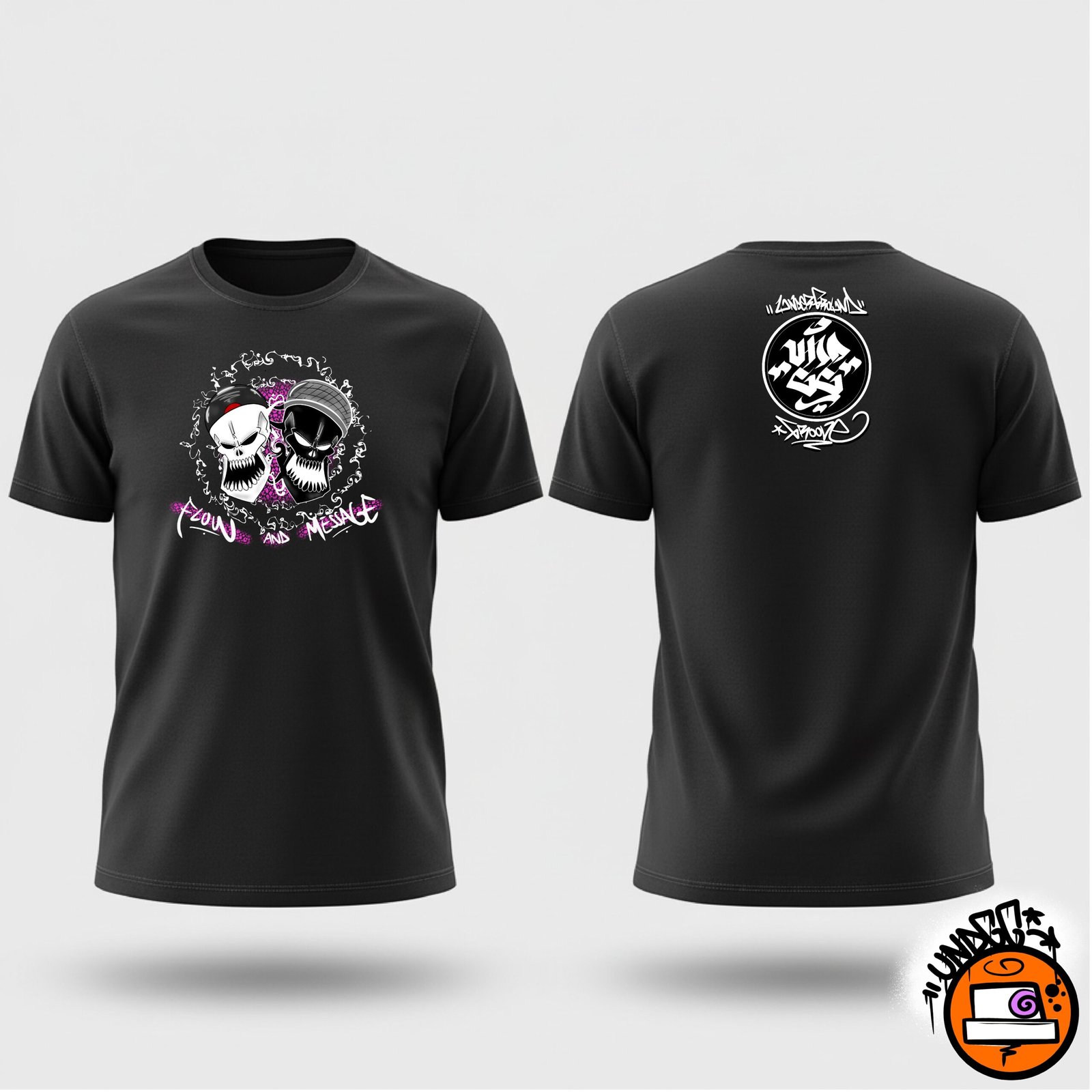 Camiseta negra calaveras ying yang rap flow y mensaje
